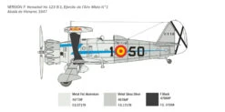 SUPER DECAL SHEET FOR 6 VERSIONS – COLOR INSTRUCTION SHEET During the 1930s the German Henschel were tasked to design and build a ground attack aircraft that could provide support to ground troops. This led to the creation of the robust Henschel Hs-123 biplane, which was supplied to flying Squadrons in 1935. The first operational deployment of the aircraft took place during the Spanish Civil War to the Condor Legion squadrons. Due to its 880 hp BMW radial engine the Hs-123 was able to reach a top speed of 340 km/h and could carry a large offensive payload. During the Second World War, despite its proven reliability, the rapid technological evolution of aircraft design, engines and performance relegated the Hs-123 to supporting roles. On the Eastern Front for example, it was used primarily in a night-time ground attack role. Type: Fighter aircrafts Period: Spanish Civil War Skill: 3 Model Dim.: 17.3 cm Box Dim.: 345 x 242 x 48 mm Decals for 6 versions