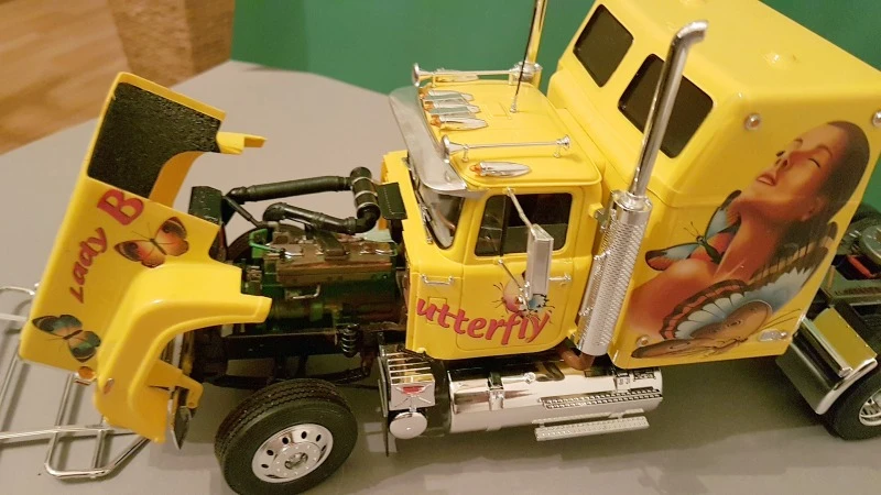 This large tractor is representative of many trucks used in the USA. Equipped with powerful engines and very large fuel tanks, these vehicles travel hundreds of miles at a time from one State to another. Characterised by large drive cabs with in-built sleeping facilities and every other possible comfort, they are, for their American drivers, a true home from home. Numerous on the road movies have succeeded in making this category even more popular.