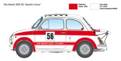 New moulds – Highly detailed model – Openable hood and trunk – Open or closed top – Opening car doors – Steerable wheels – Working suspension – Rubber tires – Photoetched and chromed parts One Model in two versions: – Fiat Abarth 695SS – Fiat Abarth 695SS Assetto Corse The “Nuova 500” was produced by Fiat from 1957 to 1975. It is a real icon on four wheels and one of the symbols of “made in Italy”. Its unique and recognizable design is famous all over the World. When the small car was set up by the Italian car manufacturer, its goal was simple: to introduce on the market at a very affordable price a new compact car able to enlarge the number of potential customers. In addition to the classic Fiat 500, that obtained an impressive commercial success all over the World, the Italian car manufacturer Abarth produced several special versions characterized by unmistakable sporting and racing attitude. In 1964 Abarth, originally founded as racing team, presented two interesting versions developed on the Fiat Nuova 500 chassis and body : the 695 and the 695 SS. Both versions were equipped with a 689 cm3 engine and were able to reach the max speed of 140 Km/h. In 1965 Abarth developed the Fiat 695 SS Assetto Corsa with improved performances and features.