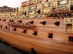 A double plank on frame hull construction, building plans with general details, English instructions booklet, gold gilded white metal castings, walnut and basswood hull planking, wooden masts and spars, brass and walnut fittings, etched brass details, rigging cord and silk flags. All sheet ply sections are laser cut for accuracy. A full color poster is provided with the kit to show the beauty of the finished model.