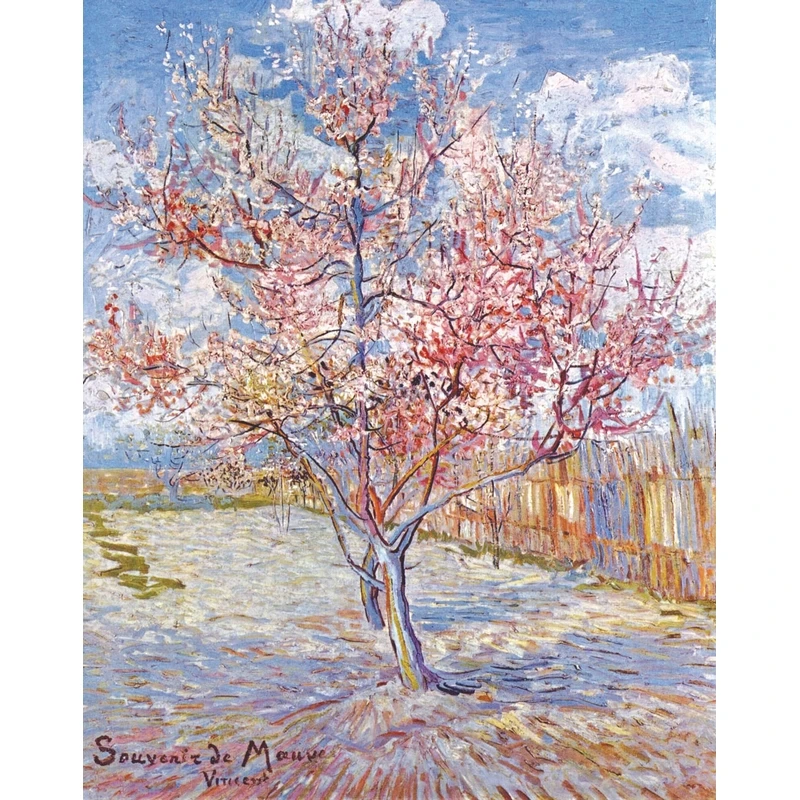 Van Gogh painted a series of paintings of blossoming orchards in the spring of 1888 during his stay in Arles, including this “Souvenir de Mauve” from 1888, in homage to Anton Mauve, his cousin and teacher. These two peach trees in full bloom under the spring sun are part of the collection of the Kroller-Muller Museum in the Netherlands.