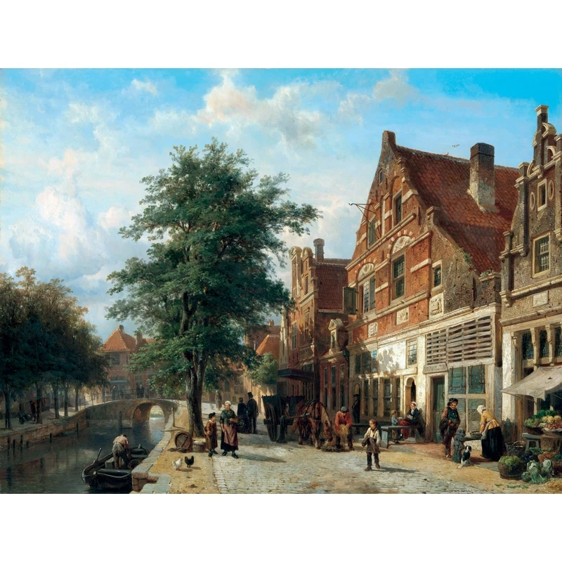 Cornelis Springer was a 19th century Dutch painter, known for his paintings of architecture and cityscapes. In this work, he represents the port city of Enkhuizen located north of Amsterdam.