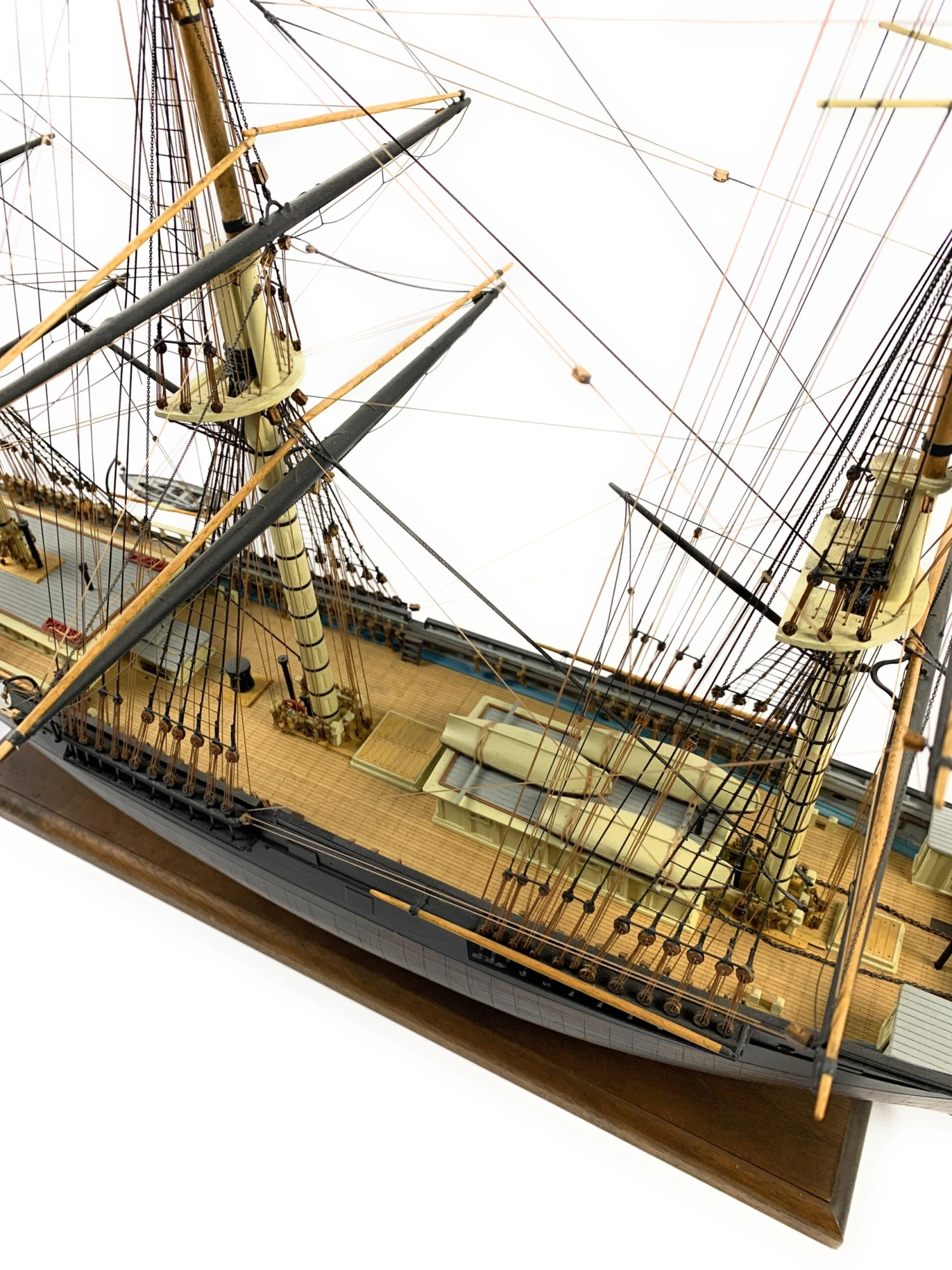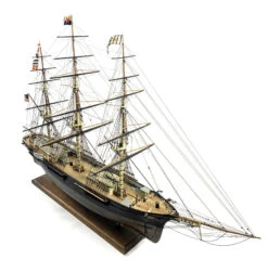Plank-on-bulkhead construction by Model Expo features laser cut basswood keel and 21-piece bulkhead set. Stem, sternest, rudder, stern pieces and planksheer are also laser cut. The hull is planked with individual basswood strips, and we supply self-adhesive copper coil to sheath it below the waterline. Masts, yards and spars are high quality beech. Rigging plan is faithful to the original, with three diameters each of black standing and white running rigging, plus 200 wooden deadeyes and 225 blocks in various sizes. Eyebolts, backing links and ship’s bell are solid brass. We reproduce virtually every detail of the real clipper ship, and expertly cast Britannia metal fittings ensure scale accuracy. You’ll find figurehead, anchors, five ship’s boats, capstans, binnacle, mast caps, windows and ladders, chocks, davits and stanchions.