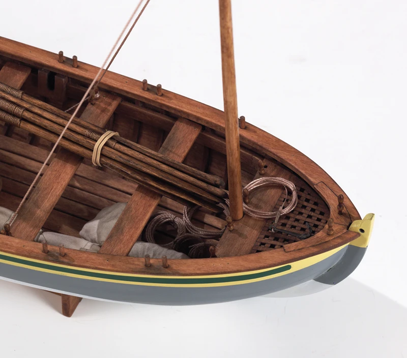 The Bounty s launch was typical of boats issued to Royal Navy ships of the period. Historically accurate and highly detailed, Model Expo HMS Bounty s Launch kit is based on original plans from the Nautical Maritime Museum in Greenwich, England. It features true plank-on-frame construction with laser-cut wooden components, laser engraved rabbet, and bearding lines. Beautiful cherry wood is provided for the frames and deck beams. Hull and quarterdeck planking, floorboards, and mold stiffeners are flexible basswood. The fitting package replicates authentic gear, including ten oars, eight lathe-turned wooden Model Shipways Barrels, wooden chest, cast metal anchor, brass gudgeons and pintles, plus cotton sails and cordage. Five sheets of plans and illustrated instruction manual assure trouble-free assembly.