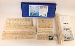 Model Shipways’ Niagara kit is a faithful representation of the reconstructed Niagara at the maritime museum in Erie, PA. Model design is based on research and plans for the 1990 reconstruction, provided by Melbourne Smith of the International Historical Watercraft Society in Annapolis MD. Laser cut basswood parts facilitate plank-on-bulkhead construction.