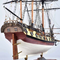 Your finished Model Expo kit will be an authentic replica, with four sizes each of gray running and black standing rigging, 110 wooden deadeyes, and over 200 blocks. Four sheets of plans (two by George F. Campbell outlining hull details and rig plan, plus two by Ben Lankford showing plank-on-bulkhead hull construction) and a comprehensive 48 page illustrated instruction book guide you to a memorable Rattlesnake model. (Display base brass pedestals not included.)