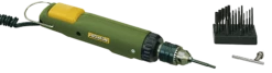 With pre-selectable torques of 0.26 – 1.48 lbs ft (0.35 – 2.0Nm). Small, light and easy to handle. An ideally positioned rocker switch provides on/ off/reverse. A RÖHM chuck facilitates acceptance of all bit shanks of up to 6.5mm (also for standard 1/4″ bits). Housing of glass fibre-reinforced POLYAMIDE. Complete with 16 inserts of chrome molybdenum steel.