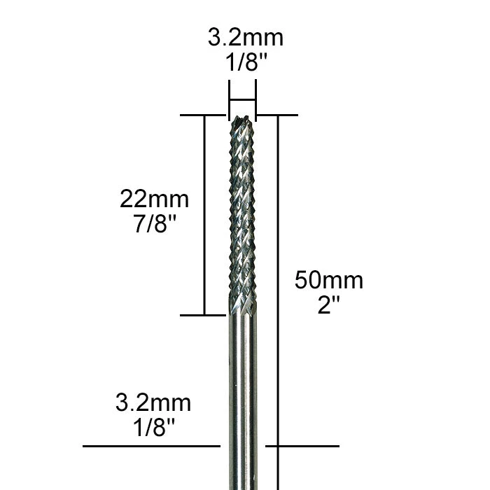 For working on extremely hard materials: steel, cast steel, non-ferrous metals, plastics. Vibration-free milling of high accuracy dimensions. Ideal for technical work, engraving or milling circuit-boards. Shanks Ø 7/64″ (3mm) or Ø 3/32″ (2.35mm).