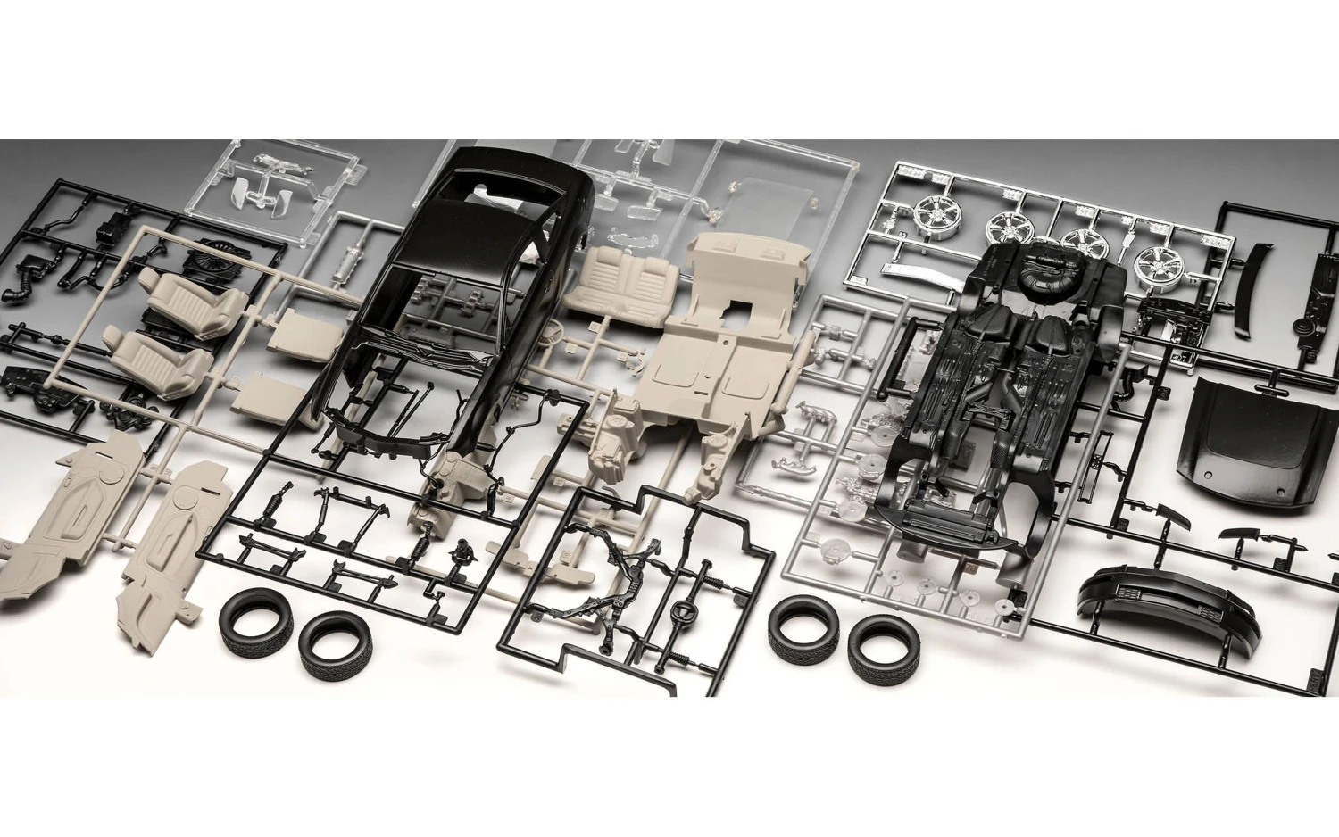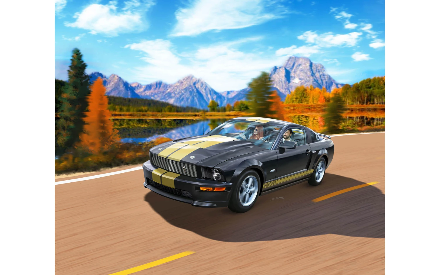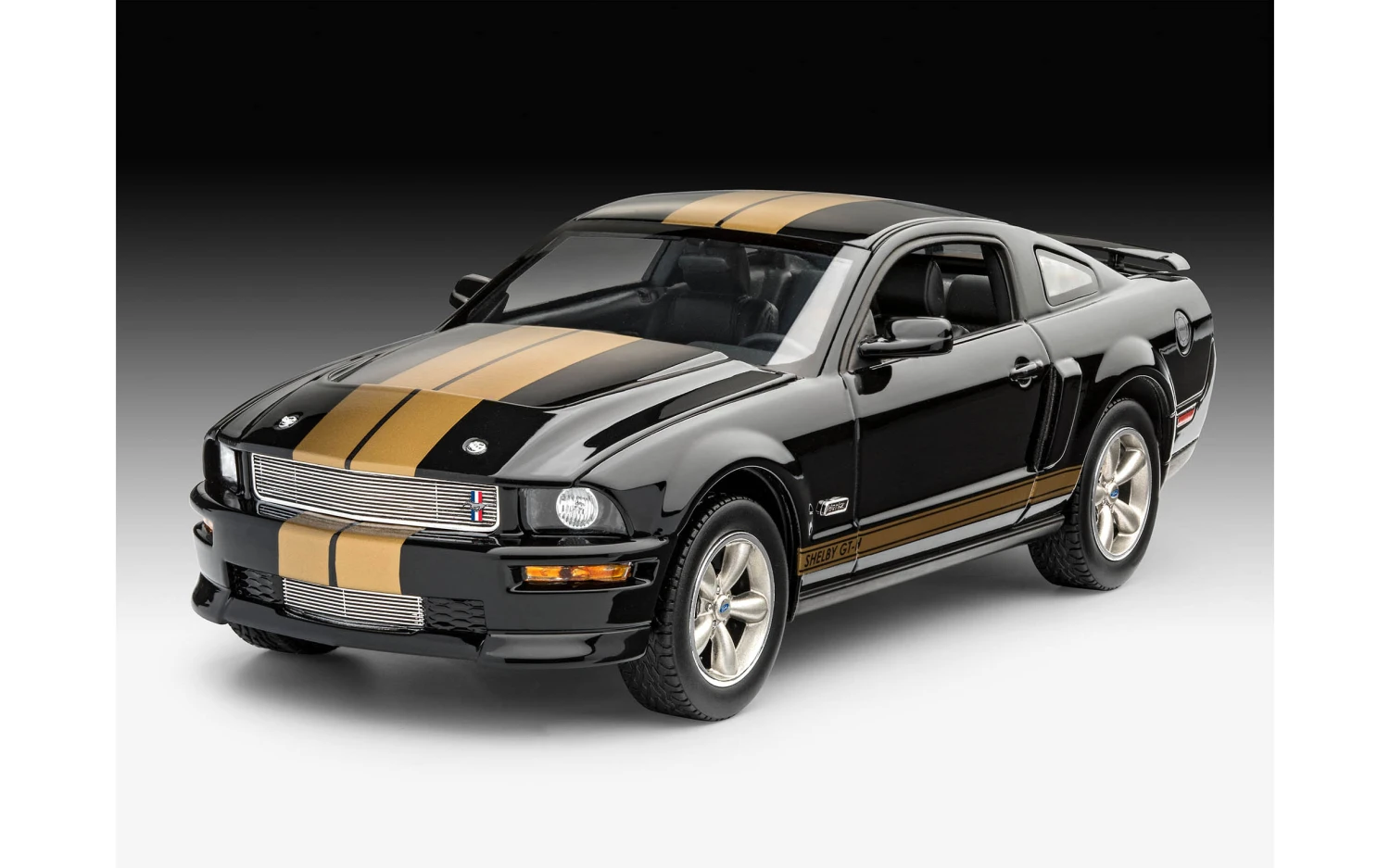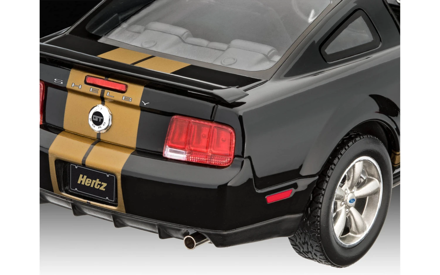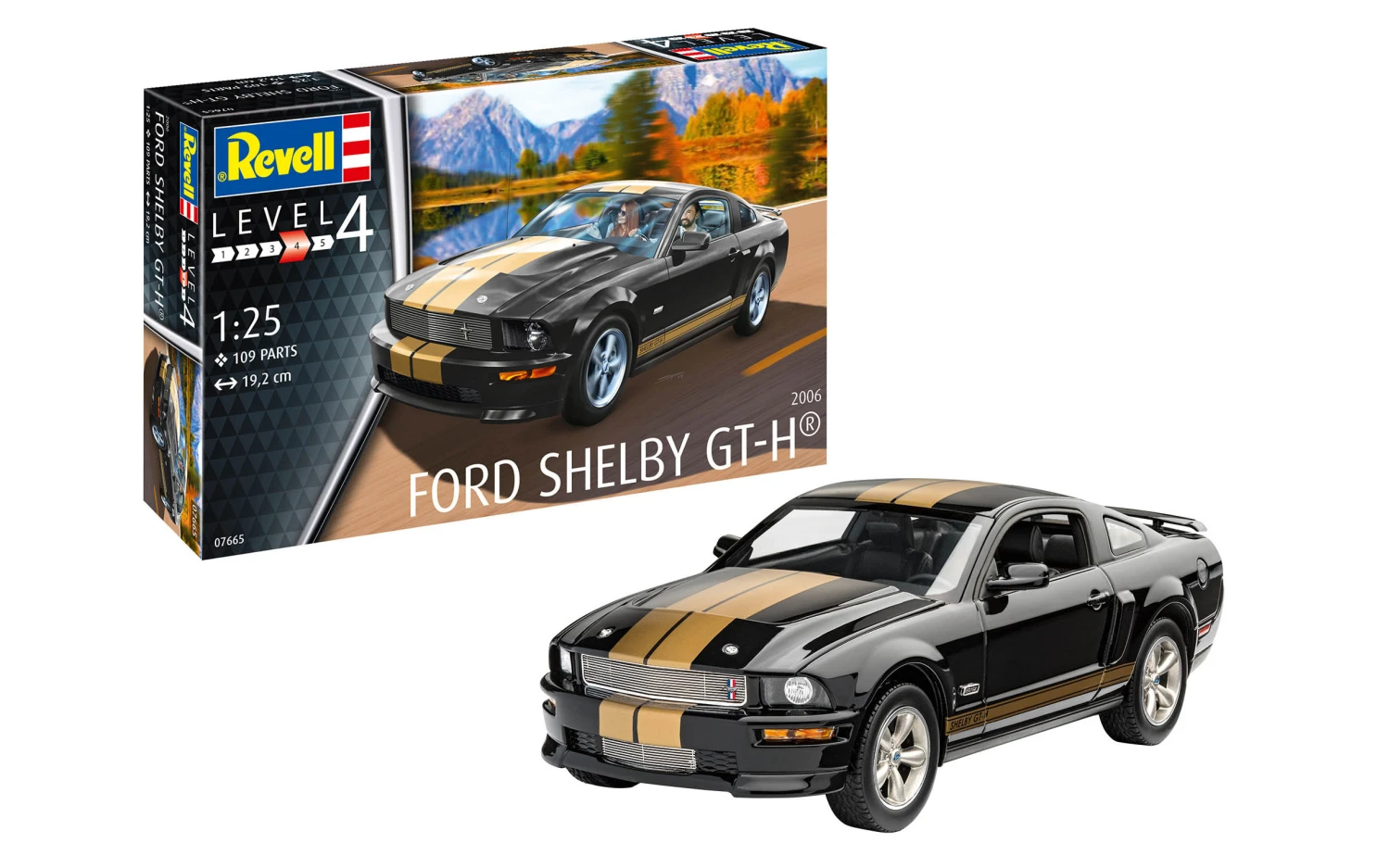This is Revell 1:25 scale model kit of the 2006 Ford Shelby GT-H. Shelby features an attractive black-gold painting scheme and 325 horsepower engines. It is made in 500 vehicle edition in recognition of legendary 1966 Shelby GT 350-H. The kit contains 109 parts. The finished model is 192 mm long and 78 mm wide.HIGHLIGHTSGenuine markingsFeatures removable hoodMultiple chrome componentsFeatures multi-part V8 engine