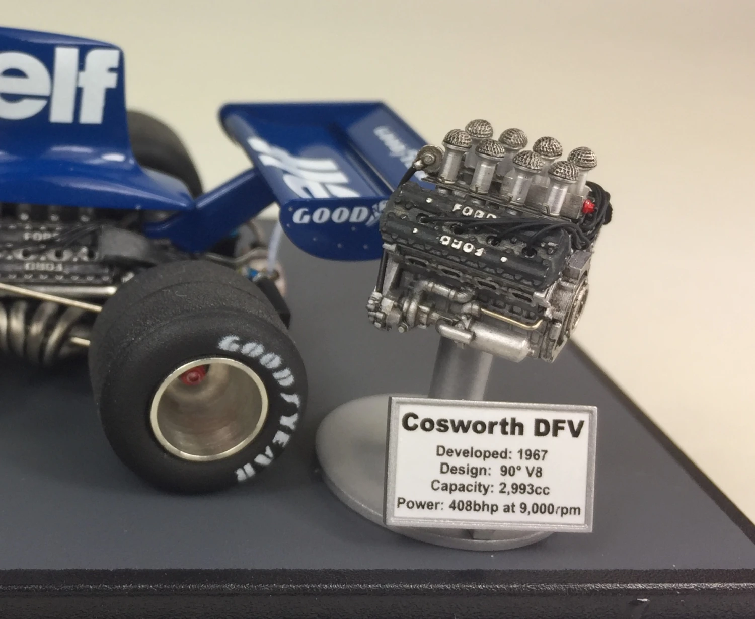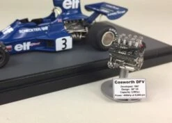 The DFV is an internal combustion engine that was originally produced by Cosworth for Formula One motor racing. The name is an abbreviation of Double Four Valve, the engine being a V8 development of the earlier four-cylinder FVA, which had four valves per cylinder. Its development in 1967 for Colin Chapman’s Team Lotus was sponsored by Ford. For many years it was the dominant engine in Formula One, with the whole engine program funded by Ford Europe and engines badged as “Ford” for Formula One races. DFVs were widely available from the late 1960s to the mid-1980s and were used by every specialist team in F1 during this period It was also used in other categories of racing, including CART, Formula 3000, and sportscar racing.