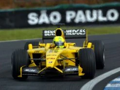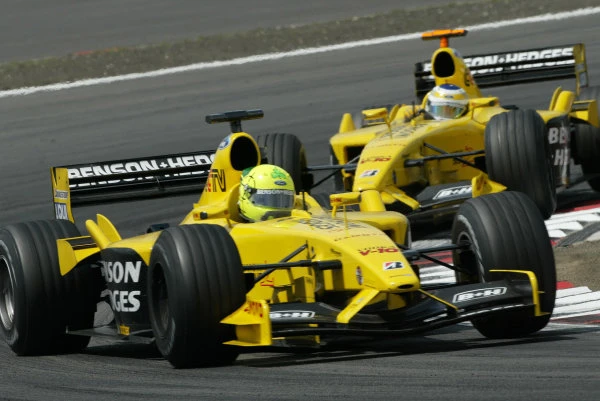 This white metal kit is a replica of a Formula 1 Jordan EJ-13 Ford race car driven by Giancarlo Fisichella (race winner) in car #11 & Ralph Firman in car #12 at the 2003 Brazilian Grand Prix. Kit includes photo etched parts, decals and instructions. Photos of the actual car are shown still sealed in the clear plastic packaging and may not be clear. must be completely assembled. Kit weighs 5 oz.