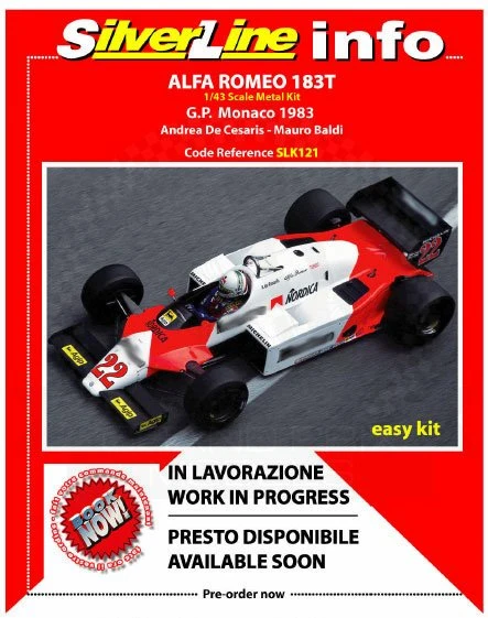 Tameo SLK121 Alfa Romeo 183T – 1983 – White Metal Car Kit – Scale 1:43, Made In Italy