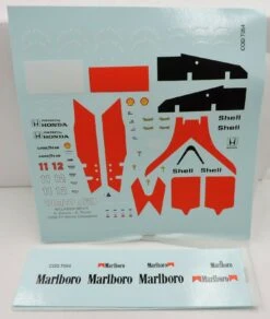 This white metal kit is a replica of a McLaren Honda MP4/4 Formula 1 race car driven and won by Ayrton Senna in the 1988 Japanese Grand Prix. Kit includes photo etched parts, decals and instructions. Photos of the actual car are shown still sealed in the clear plastic packaging and may not be clear. Car Length 4″ and must be completely assembled. Kit weighs 6 oz.