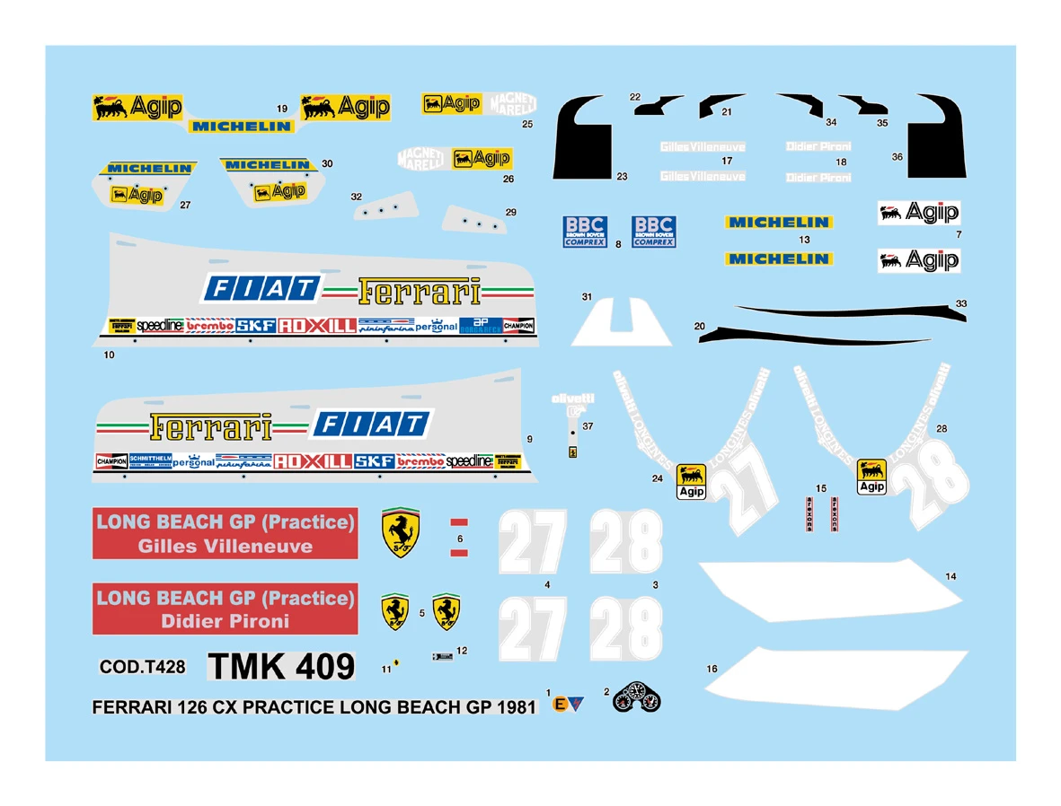 Tameo TMK 409 Metal Kit 1:43 Scale – Ferrari F1 126CX – Long Beach G.P. 1981 – Gilles Villeneuve