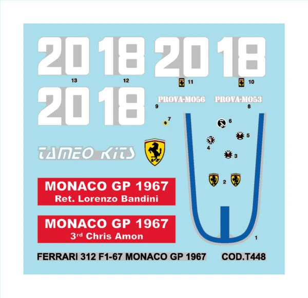 Tameo TMK 419 FERRARI F1-67 1967 Monaco GP – White Metal Car Kit – Scale 1:43