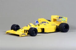Formula 1 Lotus T-102 Lamborghini – 1990, NIB, made in Italy. This beautiful Tameo car kit is still new in the box. This kit is a replica of the Lotus T-102 Lamborghini – driven by Derek Warwick in car #11 & Martin Donnelly in Car #12 at the Brazilian Grand Prix in 1990. This kit has approximately 150 parts that are produced with the most varied types of materials. The body, the bottom part and the main components of the model are all cast in white metal, whilst the other parts are produced using photoengraved metal. The smallest parts are produced by using the micro turner process. The tires are made using real rubber. A full color instruction sheet is supplied with the kit, together with a collection of photographs of the original racing car.