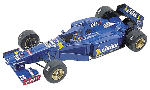 Formula 1 Liger Js-41 Mugen Honda – 1995 – NIB, made in Italy. This beautiful Tameo car kit is still new in the box. This kit is a replica of the Liger Js-41 Mugen Honda – driven by Aguri Suzuki in car #25 & Olivier Panis in Car #26 (who finished 2nd) at the Argentina Grand Prix in 1995. This kit has approximately 150 parts that are produced with the most varied types of materials. The body, the bottom part and the main components of the model are all cast in white metal, whilst the other parts are produced using photoengraved metal. The smallest parts are produced by using the micro turner process. The tires are made using real rubber. A full color instruction sheet is supplied with the kit, together with a collection of photographs of the original racing car.