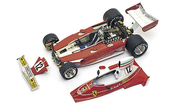 This Tameo white metal kit represents the highest quality of our kits and is a replica of a Ferrari 312T Formula 1 race car driven and won by Nikki Lauda (Race winner / Pole winner ) in Car #12 at the 1975 Monaco Grand Prix and World Championship. Kit includes photo-etched parts, decals, and instructions. Photos of the actual car are shown still sealed in clear plastic packaging and may not be clear. Kit must be completely assembled.