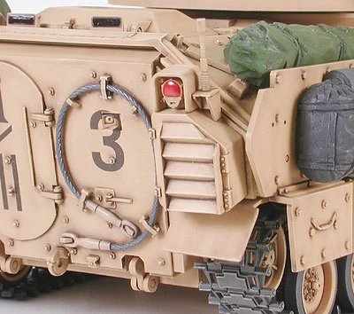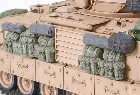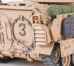 | ?Overall length 193mm ?Laser rangefinder, GPS antenna, rear sensors and box exhaust have been accurately replicated. ?Comes with option of two 25mm cannons. ?Tracks with highly durable pads ?CIP attached on both sides and the rear. ?Plenty of extra attachments including personnel equipment such as alice packs and sleeping bag. ?Body armor wearing commander and gunner half-figures included. ?Decals for 3 different vehicles deployed to Iraq and 3 different vehicles deployed on NATO operations. |