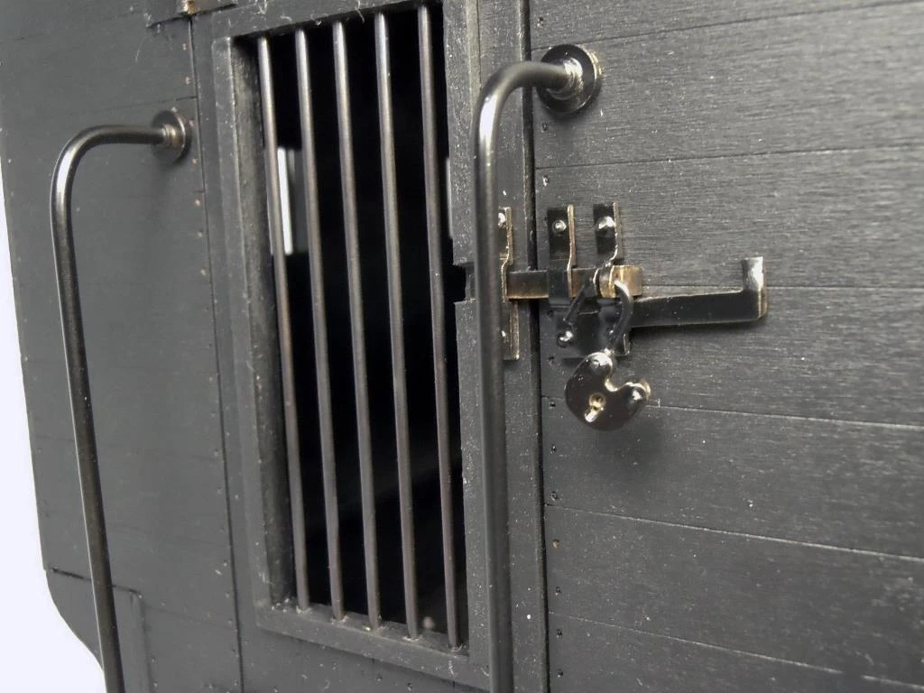 The U.S. Marshal’s Jail Wagon is an accurate replica ( 12 times smaller) than the real one still proudly displayed in Wyoming. Often referred to as a “Tumbleweed Wagon” it was used by the Marshals to round up Federal prisoners from local jails.